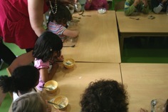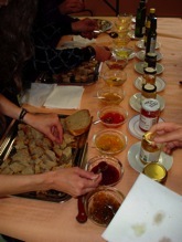 Ci-dessous, des photos d’un atelier réalisé dans une école en juin 2009. Cette fois, la dégustation était autour de différentes confitures, huiles et pains originaux: